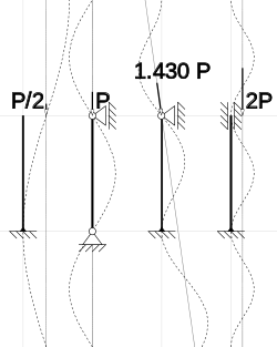 - der Lagerung der Enden des Stabs (etwa per Drehgelenk, verschieblich mit Schub- oder Drehschubgelenk oder fest eingespannt); siehe „Eulersche Knickfälle“