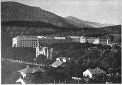 | Collegium Immaculatae Virginis, Kalksburg | Primo Calvi: Darstellung des politischen Bezirkes Hietzing Umgebung durch umfassende Beschreibung aller Dörfer, Ortschaften, Kirchen, Schulen, Schlösser, Anstalten und bemerkenswerten Objecte etc. etc. Selbstverlag, Wien 1901. S. 130. | unbekannt | Datei:Collegium Immaculatae Virginis Kalksburg 1900.png |