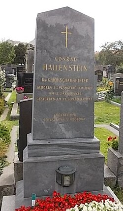- ↑ Kleine Chronik. (…) † Conrad Hallenstein. In: Neue Freie Presse, Morgenblatt, Nr. 10093/1892, 29. September 1892, S. 4, Mitte unten. (online bei ANNO).