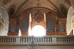 I/P | 10 | 1949 technischer Neubau mit pneumatischer Traktur und Kegelladen, Pfeifen großteils von 1721 von Ferdinand Schwarz, Orgel 2005 durch Orgelstudio Mobil gereinigt und überholt[10] |