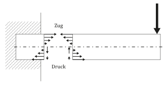 Lasten führen im Allgemeinen entsprechend dem o. g. Reaktionsprinzip zu inneren Kräften im Bauteil. Diese können in Form von Spannungen der Dimension Kraft pro Fläche ausgedrückt werden, welche üblicherweise als Maß für die Beanspruchung des Materials herangezogen werden. Durch den Vergleich mit Grenzspannungen, welche zum Bruch oder anderem Versagen führen, kann beispielsweise eine maximal durch das Bauteil aufnehmbare Kraft bestimmt werden (Tragfähigkeit). Außerdem werden in Abhängigkeit der Steifigkeit Verformungen des Bauteils hervorgerufen, welche ebenfalls eingeschätzt werden sollen.