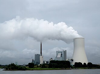 | Auf dem Bild ist das Kraftwerk Duisburg-Walsum im laufenden Betrieb zu sehen. Beide Blöcke (Block 9 und Neubau Block 10) produzieren Rauchgase, die Masse der Abgase kommt von Block 10 (rechts im Bild - Kühlturm mit kombinierter Nutzung als Schornstein) und verdeckt teilweise den Schornstein von Block 9 (links im Bild). | Eigenes Werk | Regionalplaner | Datei:Kraftwerk Duisburg Walsum 08.2013.jpg | |