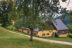 | Kulnighof, Christofberg (Gemeinde Brückl, Kärnten): Bauernhaus. Im Dehio Kärnten 2001, S.66, als "für die Ausläufer der Saualpe typisches Winkelhaus" erwähnt; Längslaubenhaus. gut erhaltener Bauernhof; Das Dach wurde 2015 nach einem starken Hagelunwetter renovierte. | Eigenes Werk | Niki.L | Datei:Kulnighof von O.JPG | |
