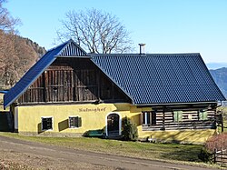 | Kulnighof, Christofberg (Gemeinde Brückl, Kärnten): Bauernhaus. Im Dehio Kärnten 2001, S.66, als "für die Ausläufer der Saualpe typisches Winkelhaus" erwähnt; Längslaubenhaus. gut erhaltener Bauernhof; Das Dach wurde 2015 nach einem starken Hagelunwetter renovierte. | Eigenes Werk | Niki.L | Datei:Kulnighof von W.JPG |