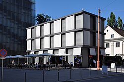 | Bregenz, Nebengebäude (Café, Shop) des Kunsthauses Bregenz am Kornmarkt | Selbst fotografiert | Photo: Andreas Praefcke | Datei:Bregenz Kunsthaus Café.jpg | |