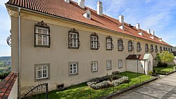 Der lang gestreckte, zweigeschoßige Barockbau steht im Westen der Wallfahrtskirche. Er wurde 1708 errichtet, 1716 aufgestockt und 1766 renoviert. Die 15-achsige Front hat zwei Portalvorhallen mit Rundgiebeln und Rundbogenportalen. Im Erdgeschoß haben die Fenster schmiedeeiserne Steckgitter, im Obergeschoß Fensterkörbe, um 1730. Das Erdgeschoß hat Stichkappengewölbe, das Obergeschoß flache Decken.