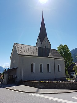 Bereits am 22. Jänner 1785 wurde mit einer kaiserlichen Resolution eine Lokalkaplanei bewilligt, mit der Auflage, dass die Kirche und das Kaplanhaus neu zu errichten sind.[2] Die Grundsteinlegung für die neue Kirche erfolgte am 3. April 1791 und bereits am 23. Juli 1790 konnte der Dachstuhl aufgesetzt werden. Das Gewölbe stürzte in weiterer Folge zweimal ein, wodurch die Einweihung der Kirche erst am 18. Oktober 1791 erfolgen konnte. 1793 wurde der Hochaltar installiert (von Josef Römer aus Schruns gefertigt), 1796 wurde die große Glocke aufgezogen, 1803 die erste Orgel installiert (Schennach/Rankweil). 1805 folgte die Kirchturmuhr. Erst 1820/1821 konnten die Seitenaltäre aufgestellt werden[3] (heute nicht mehr vorhanden).