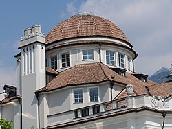 | Das 1874 erbaute Kurhaus in Meran wurde 1912-1914 nach Entwurf des Wiener Architekten Friedrich Ohmann um den Kursaal und die prägnante Rotunde in einer vom Jugendstil beeinflussten Architektur erweitert. | Eigenes Werk | böhringer friedrich | Datei:Kurhaus 1874 Meran 01.JPG | |