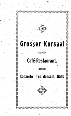 | Advertisement for the Meran Kursaal Restaurant 1925 | Advertisement from 1925 | Autor/-in unbekannt Unknown author | Datei:Kursaal meran werbung 1925.png |