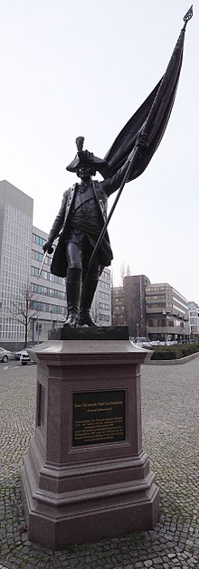 - ↑ Peter Bloch u. a.: Ethos und Pathos. Die Berliner Bildhauerschule 1786–1914. Beiträge mit Kurzbiographien Berliner Bildhauer. Gebr. Mann, Berlin 1990, ISBN 3-7861-1598-2, S. 33; Jörg Kuhn: Die Denkmäler preußischer Generäle vom Wilhelmplatz, Einführung und Katalog, in: Zur Wiederaufstellung der Generalsdenkmäler von Johann Gottfried Schadow und anderen Bildhauern auf dem Zietenplatz, Hrsg. von der Schadow Gesellschaft Berlin e. V., Berlin 2008, S. 11–24, bes. S. 12