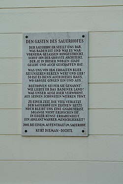 | Tafel am Sauerhof in Baden in Niederösterreich | Eigenes Werk | Karl Gruber | Datei:Baden 5967.jpg |