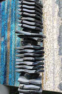 | Dieses Foto zeigt das im digitalen Kulturgüterverzeichnis der Gemeinde Wien (Österreich) unter der Nummer 42369 ( commons , de ) aufgeführte Objekt. | Eigenes Werk | Haeferl | Datei:Wien-Penzing - Hartsteinzeugplastik Bewegungsrhythmus von Kurt Ohnsorg 1970 - Mosaik Organische Struktur von Heinrich Tahedl 1969.jpg |