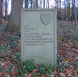 - ↑ Thilo Vogelsang: Hammerstein-Equord, Kurt Gebhard Adolf Philipp Freiherr von Generaloberst, * 26.9.1878 Hinrichshagen (Mecklenburg-Strelitz), † 24.4.1943 Berlin-Dahlem. (evangelisch), in: Neue Deutsche Biographie (NDB). Band 7, Duncker & Humblot, Berlin 1966, S. 596 f. ISBN 3-428-00188-5.