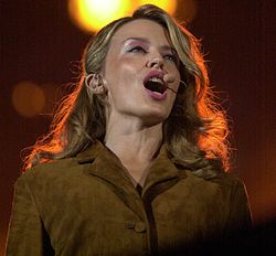 Kylie Ann Minogue [], AO, OBE (* 28. Mai 1968 in Melbourne, Australien) ist eine australisch-britische Popsängerin und Schauspielerin. Seit dem Beginn ihrer Karriere 1986 avancierte sie vom singenden Soap-Star zu einer internationalen Pop-Ikone. Mit Hits wie I Should Be So Lucky, The Loco-Motion, Kids, Can’t Get You Out of My Head und All the Lovers schaffte sie weltweit den Sprung auf die vordersten Plätze der Hitparaden. In Großbritannien ist sie mit 35 Top-10-Singles die zweiterfolgreichste Sängerin in der Geschichte der Charts nach Madonna. Weltweit verkauften sich bislang 70 Millionen ihrer Tonträger.[1] Sie wurde unter anderem mit zwei Grammys und mehreren BRIT Awards ausgezeichnet.