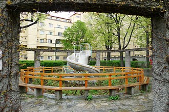| Dieses Foto zeigt das im digitalen Kulturgüterverzeichnis der Gemeinde Wien (Österreich) unter der Nummer 42022 ( commons , de ) aufgeführte Objekt. | Eigenes Werk | Thomas Ledl | Datei:Bebelhof Rutsche 2.JPG |
