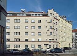 Dieses sezessionistische Zinshaus stammt vom Architekten Johann Karl Stadler und wurde 1906 erbaut. Es ist durch Lisenen gegliedert und ist durch Rosengirlanden dekoriert.