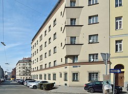 Das sezessionistische Zinshaus wurde 1905 errichtet. Es weist neobarocke Elemente auf, besitzt Polygonalerker und Lorbeerblattfries sowie eine bemerkenswerte Holztür.