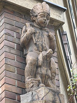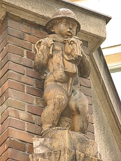 Vor dem Haus Nummer 3 befindet sich eine humorvolle Bronzeplastik mit dem Titel Akrobat.