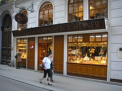 | "Heiner's Haustorte" cake at the L. Heiner cafe at Wollzeile in Vienna . | Eigenes Werk | Gryffindor | Datei:L.Heiner Cafe Vienna 2007 007.jpg | |