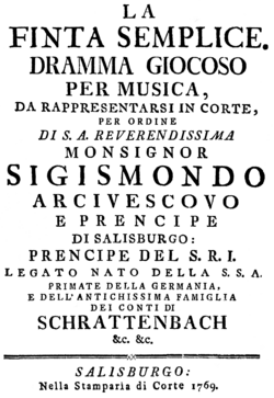 | Mozart - La finta semplice - title page of the libretto, Salzburg 1769 | https://gallica.bnf.fr/ark:/12148/bpt6k8565459 | Wolfgang Amadeus Mozart, Marco Coltellini | Datei:Mozart - La finta semplice - title page of the libretto, Salzburg 1769.png | |