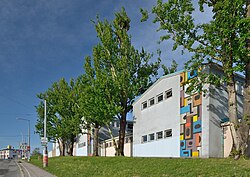 | Das Laaerbergbad ist ein städtisches Sommerbad auf dem Laaerberg im 10. Wiener Gemeindebezirk Favoriten. | Eigenes Werk | GuentherZ | Datei:GuentherZ 2009-08-25 1225 Laaerbergbad Verwaltungsgebaeude.jpg | |