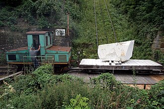 | Die Laaser Marmorbahn. Der Waggon mit dem Marmorblock wird angekuppelt und von der Plattform gefahren. | Eigenes Werk | Kuebi = Armin Kübelbeck | Datei:Laaser Marmorbahn 13.jpg | |