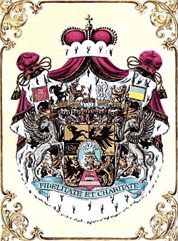 | Wappen der Fürsten Batthyány-Strattmann. Im Jahr 1763 wurde Karl Josef Batthyány in den böhmischen Fürstenstand erhoben, 1764 auch in den Reichsfürstenstand. Seine Mutter Eleonore von Stratmann heiratete hatte 1692 seinen Vater Adam II. Batthyány geheiratet. Die Güter und der Name ihres Vaters Graf Theodor Heinrich von Strattmann, der 1693 starb, wurden mit denen des Hauses Batthyány zusammengelegt. Erbe des Fürstentitels wurde Karl Josefs Neffe. | Wappengrafik | Ernst Krahl († 1926) | Datei:Batthyany-Strattmann-Fuerstenwappen.jpg | |