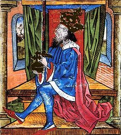 | This picture from the Thúróczy Chronicle shows Ladislaus IV of Hungary. | Thúróczy Chronicle. | Der ursprünglich hochladende Benutzer war Csanády in der Wikipedia auf Ungarisch | Datei:Kun L szl Thuroczy.jpg | |