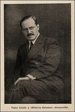 | Vajda László, született Weisz Lipót, külföldön Ladislaus Vajda (Eger, 1877. augusztus 19. – Budapest, 1933. március 8.) magyar író, forgatókönyvíró, újságíró, színházi rendező. | Színházi Élet - 1917/2. szám, 11. oldal | Unknown author, not named in the original source | Datei:Vajda László, Színházi Élet, 1917.jpg |