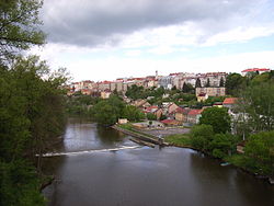 Město Tábor, pohled z mostu Bechyňské dráhy přes řeku Lužnici | Eigenes Werk | Rudolf Kukačka | Datei:Tábor-pohled od řeky Lužnice.jpg |
