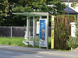 | Die Bushaltestelle Am Schlatt in der österreichischen Gemeinde Lustenau ist ein typischer Vertreter einer überdachten Bushaltestelle im Liniennetz des Landbus Unterland . | Eigenes Werk | Reinhard Müller | Datei:Lustenau, Bushaltestelle Am Schlatt.jpg |