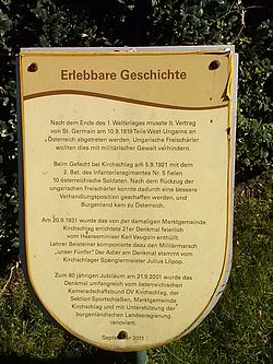 | Infotafel zu Denkmal an die Toten des Bundesheeres während der Landnahme des Burgenlandes 1921. | Eigenes Werk | Stefan97 | Datei:Kirchschlag BW6.jpg | |