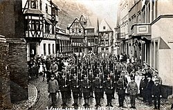 Landsturm-Kompanie in Bacharach, Januar 1915 | Sammlung Rolf Kranz | Bernhard Stephan, Boppard, Heerstraße 3 | Datei:Landsturm-Kompanie in Bacharach, Januar 1915.jpg | |