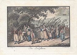 Der Landsturm. Kolorierter Kupferstich von Johann Heinrich Lips nach Franz Niklaus König | Selbstgefertigter Scan einer Grafik aus eigenem Bildarchiv | Franz Niklaus König | Datei:Lips König Landsturm.jpg | |