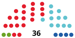 | Partei | Stimmen | Prozent | Sitze | +/- Prozent | +/- Sitze | |||||||||