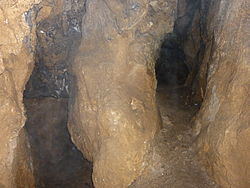 | Hier spaltet sich die Wandererklamm in den Rathstollen (links) und den Rohrauerdomgang (rechts). Langes Loch, Flatzer Wand, Niederösterreich. | Eigenes Werk | Lachmonster . Original uploader was Lachmonster at de.wikipedia | Datei:Langes Loch interior.jpg | |
