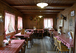 | Speisesaal in der Langkofelhütte in Gröden | Eigenes Werk | This Photo was taken by Wolfgang Moroder . Feel free to use my photos, but please mention me as the author and send me a message . Dieses Bild ist nicht gemeinfrei . Dies bedeutet, dass es u. a. Urheberrechtsschutz genießt. Es darf nur nach den hier genannten Regeln (oder mit ausdrücklicher Genehmigung des Urhebers) genutzt werden. Dies schließt insbesondere eine Verwendung in sozialen Netzwerken aus , deren Nutzungsbedingungen der hier aufgeführten Lizenz nicht entsprechen. Bitte lade an dieser Stelle keine auch nur minimal veränderte Fassung ohne Rücksprache mit dem Urheber hoch. Der Urheber möchte Korrekturen nur an der ihm vorliegenden unkomprimierten Quelle vornehmen. So ist gewährleistet, dass die Änderungen erhalten bleiben und dass keine unnötigen Kompressionsartefakte entstehen. Wenn du meinst, dass Änderungen erforderlich sein sollten, informiere bitte den Urheber oder lade eine Bearbeitung als neues Bild unter neuem Namen und unter Verwendung der Vorlage Derivat bzw. der Vorlage Extrakt hoch. | Datei:Dantersasc Langkofelhütte Speisesaal.JPG | |