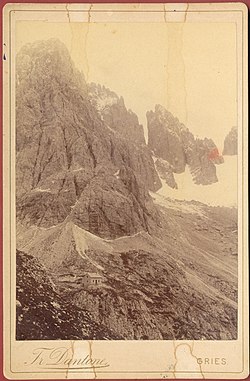 | Die Langkofelhütte etwa um 1895 in einer Aufnahme von Franz Dantone | Eigenes Werk | This Photo was taken by Wolfgang Moroder . Feel free to use my photos, but please mention me as the author and send me a message . Dieses Bild ist nicht gemeinfrei . Dies bedeutet, dass es u. a. Urheberrechtsschutz genießt. Es darf nur nach den hier genannten Regeln (oder mit ausdrücklicher Genehmigung des Urhebers) genutzt werden. Dies schließt insbesondere eine Verwendung in sozialen Netzwerken aus , deren Nutzungsbedingungen der hier aufgeführten Lizenz nicht entsprechen. Bitte lade an dieser Stelle keine auch nur minimal veränderte Fassung ohne Rücksprache mit dem Urheber hoch. Der Urheber möchte Korrekturen nur an der ihm vorliegenden unkomprimierten Quelle vornehmen. So ist gewährleistet, dass die Änderungen erhalten bleiben und dass keine unnötigen Kompressionsartefakte entstehen. Wenn du meinst, dass Änderungen erforderlich sein sollten, informiere bitte den Urheber oder lade eine Bearbeitung als neues Bild unter neuem Namen und unter Verwendung der Vorlage Derivat bzw. der Vorlage Extrakt hoch. | Datei:Dantersasc Saslong.jpg | |