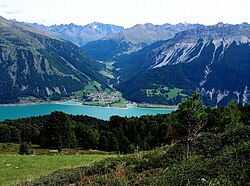 | Graun im Vinschgau am Reschensee mit blick ins Langtauferer Tal | Eigenes Werk | ArthurMcGill | Datei:Graun am Reschensee.jpg |