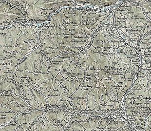 | Murauer Laßnitz. Gebiet zwischen Mur, Mettnitz und Friesach in der Obersteiermark/Oberkärnten | Ausschnittweiser Scan nach der Generalkarte von Mitteleuropa 1:200.000. Blatt 32-47 Klagenfurt. Stand 1894. | Josef Moser | Datei:Laßnitz Generalkarte.jpg | |