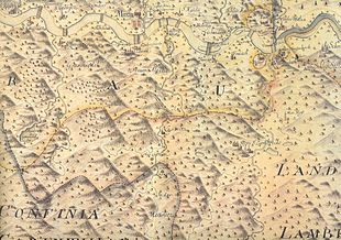 | Die Laßnitz bei Murau und ihre Umgebung 2. Hälfte des 18. Jahrhunderts. | gescannter Ausschnitt aus: Mappa Dynastiarum Schwarzenbergicarum in Styria superiore sitarum Murau, Frauenburg et Reiffenstein bonorumque his incorporatorum (Murauer Landgerichts-, Straßen- und Wegemappe, 1769/1772). Original im Schwarzenbergischen Archiv Murau Plan Nr. 82a. Scanvorlage: Archiv Verlag, Steiermark Edition Blatt Nr. STE 01010. | unbekannt/Scan: Josef Moser | Datei:Schwarzenberg-Karte.jpg |