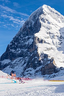 Die Lauberhornabfahrt bei Wengen in der Schweiz ist die längste Abfahrt im alpinen Skirennsport. Sie zählt zu den Klassikern des 1967 eingeführten Alpinen Skiweltcups und ist bereits seit 1. Februar 1930[1] Schauplatz des Lauberhornrennens.