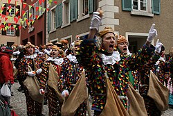 Zu den Hauptbräuchen gehört neben der Tschättermusik[15] auch das Narrolaufen. An den drei Faissen-Donnerstagen vor der Fasnacht versammeln sich frühmorgens und abends Jung und Alt in den verschiedensten Kostümen und mit allerlei Lärminstrumenten bewaffnet beim Wasentor beziehungsweise Waldtor, voran die Narronen. Gewaltig und mit ohrenbetäubenden Schlägen beginnt sie, die Tschättermusik. Mit langsamen Schritten zwängt sich der Zug durch die engen Gassen der Stadt. Gemessenen Schrittes geht es Städtle auf und Städtle ab mit Trommeln, Pauken, Trompeten, alten Pfannendeckeln, Eisenstücken, Sägeblättern, Eisenröhren und alten Töpfen, alles was Lärm macht. Von allen überlieferten Fasnachtsbräuchen am Hochrhein kann diese Tschättermusik für sich in Anspruch nehmen, dass sie am frühesten durch Quellen belegt werden kann.
