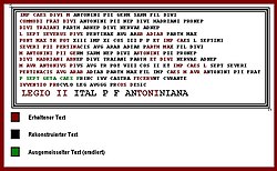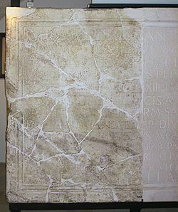 | Rekonstruierte Bauinschrift (201 n.Chr.) des LL Lauriacum nach Eugen Bormann | eigene Arbeit/own work | Veleius 19:41, 9. Jan. 2011 (CET) | Datei:Bauinschrift Lauriacum (201).jpg | |