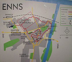 - ↑ Ruprechtsberger: Zur Topographie von Lauriacum. In: MMVL N. F. 19, 1981, S. 6;