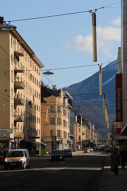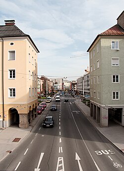| Die Ignaz-Harrer-Straße im Salzburger Stadtteil Lehen, Blichrichtung Osten; im Hintergrund der Gaisberg, davor der Kühberg. | Eigenes Werk | Eweht | Datei:Ignaz-Harrer-Straße, Salzburg-Lehen.jpg | |