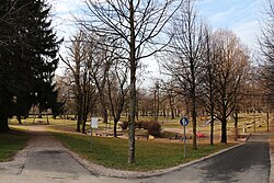 - Der kleine Park vor der Pfarrkirche Vinzenz Pallotti in Lehen nächst dem einstigen Stadion Lehen ist vor allem als Kinderspielplatz genutzt.