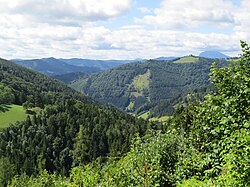 | Blick vom Haltgraben in der Nähe der Grenze von Frankenfels und Texingtal zum Frankenfelsberg und zum Ötscher, Frankenfels, Österreich | Eigenes Werk | GT1976 | Datei:2017-07-28 (089) View from Haltgraben near the boarder of Frankenfels and Texingtal to Frankenfelsberg and Ötscher, Frankenfels, Österreich.jpg | |
