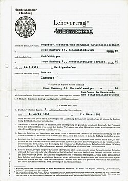 | Lehrvertrag in Deutschland 1960iger Jahre. | eigenen Lehrvertrag fotografiert | Wolf1949H | Datei:Lehrvertrag in Deutschland 1960iger Jahre.jpg |
