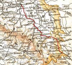 | Strecken der Lemberg-Czernowitz-Jassy-Eisenbahn auf österreichischem Gebiet | Ausschnitt aus Datei:Österreich-Ungarn_1898.jpg , bearbeitet | Österreich-Ungarn | Datei:LCJE österreichische Linien.png |
